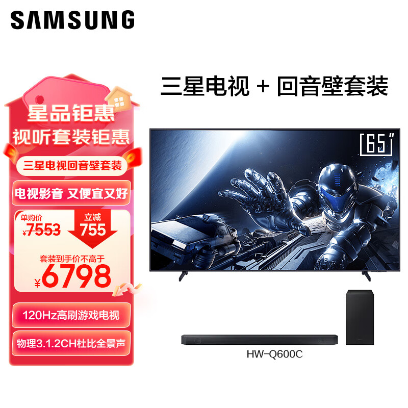 三星(SAMSUNG)65QX3C 65英寸 QLED量子点 专业游戏电视QA65QX3CAJXXZ +HW-Q600C/XZ音箱套装价格:6798.00元!