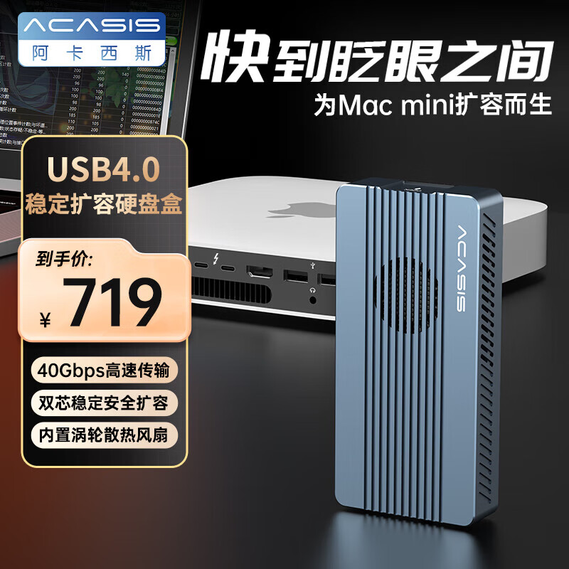 阿卡西斯 USB4.0硬盘盒NVMe M.2移动固态硬盘盒雷电3适用Type-c笔记本台式机电脑SSD固态外置硬盘盒TBU405Pro价格:798.89元!