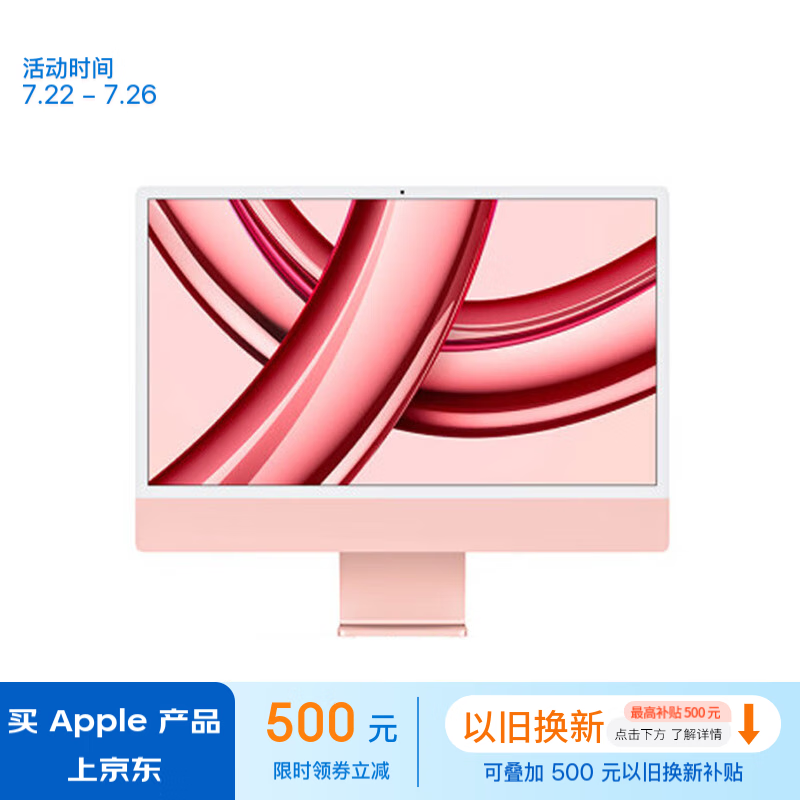 Apple/苹果AI笔记本/2023款 iMac 24英寸粉色 4.5K屏 M3(8+10核) 8G 512G 一体式电脑MQRU3CH/A价格:13999.00元!
