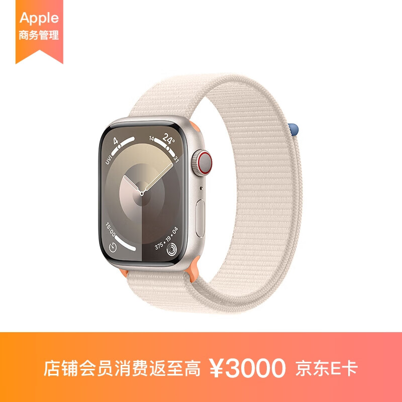 Apple Watch Series?9 (GPS);45?毫米星光色铝金属表壳;星光色回环式运动表带 MR983CH/A*企业专享价格:3199.00元!