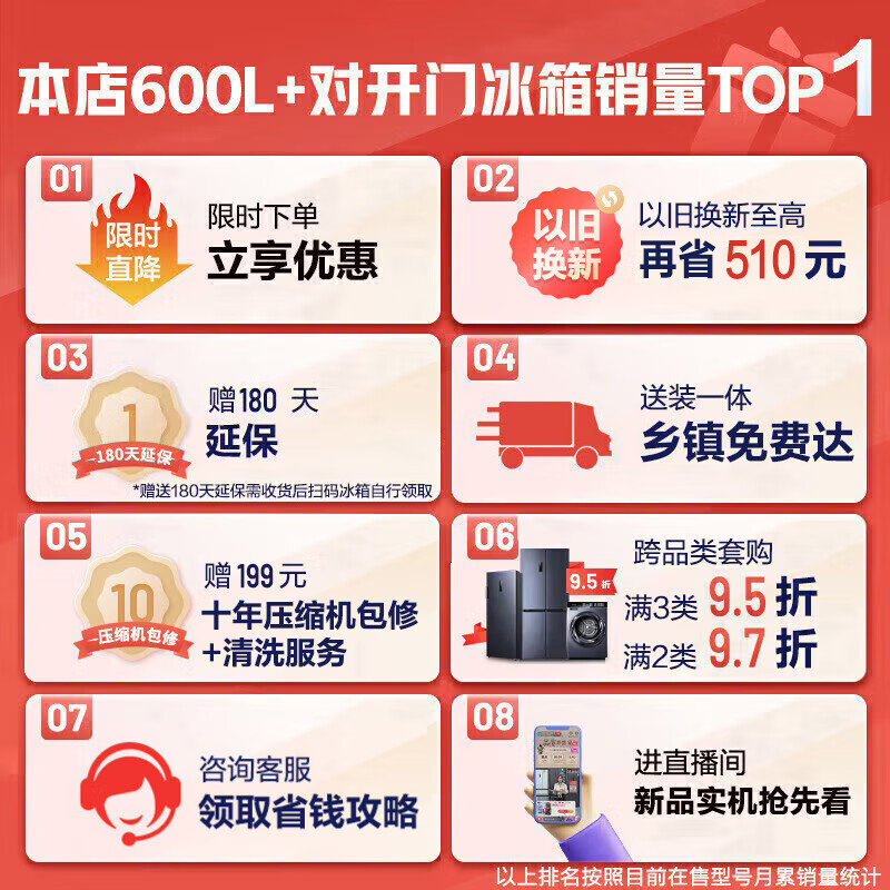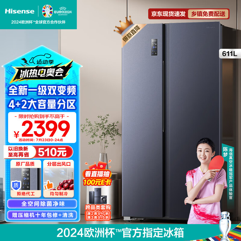 海信(Hisense)电冰箱双开门家用超薄无霜冰箱一级能效超大容量611L变频除菌净味BCD-611WFK1DPQ价格:2599.00元!