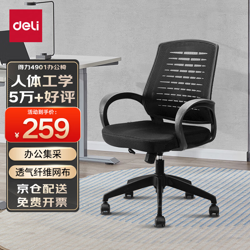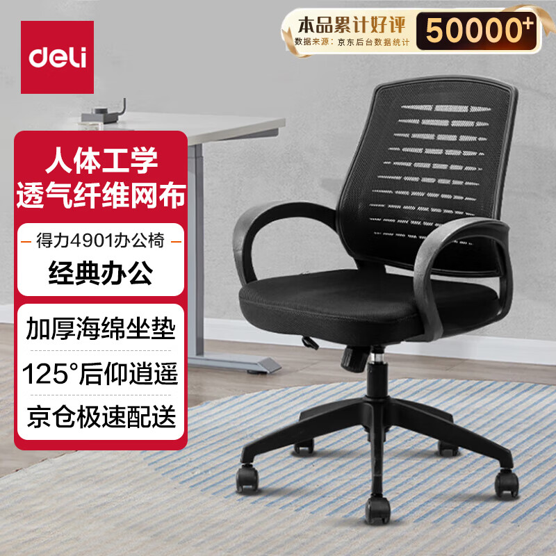 得力(deli)简约舒适办公椅 特色椅背 人体工学电脑椅 职员网布椅子 4901价格:289.00元!