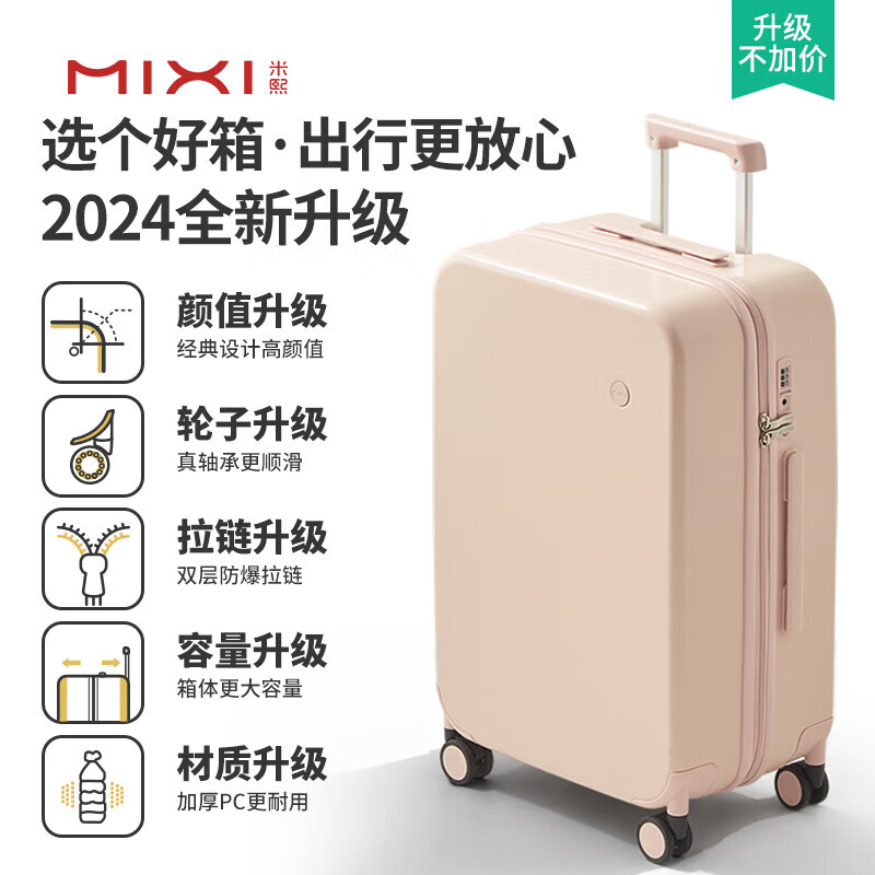 米熙拉杆箱子行李箱大容量旅行箱女密码箱行李箱包淡山茱萸粉22英寸36价格:519.00元!