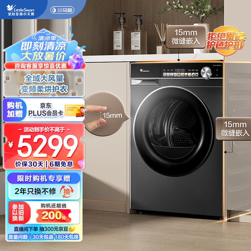 小天鹅(LittleSwan)10KG热泵烘干机 变频大风量 超薄全嵌 多维除菌螨 毛屑过滤【小乌梅MAX轻享版】TH100VH81MAX价格:5299.00元!