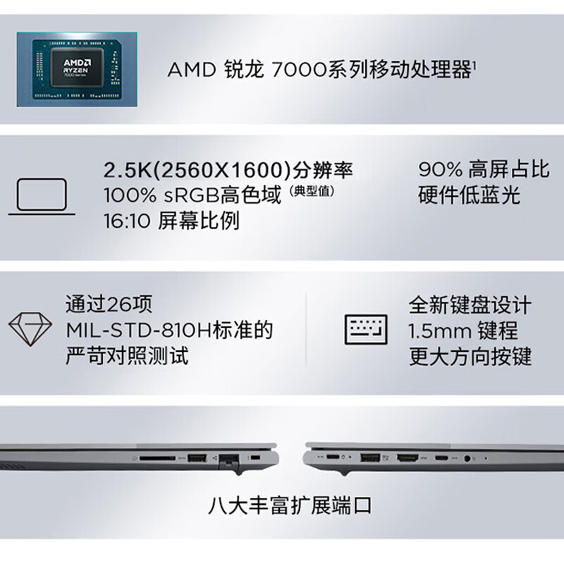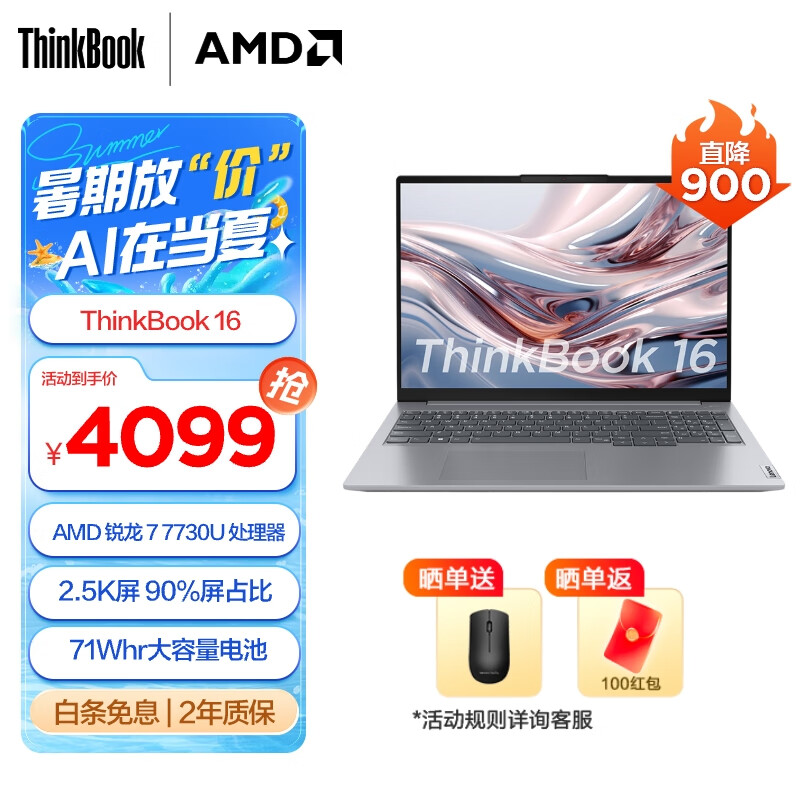ThinkPad联想ThinkBook 14/16锐龙版 商务轻薄笔记本电脑 16英寸:R7-7730U 16G 1T 1PCD价格:4099.00元!