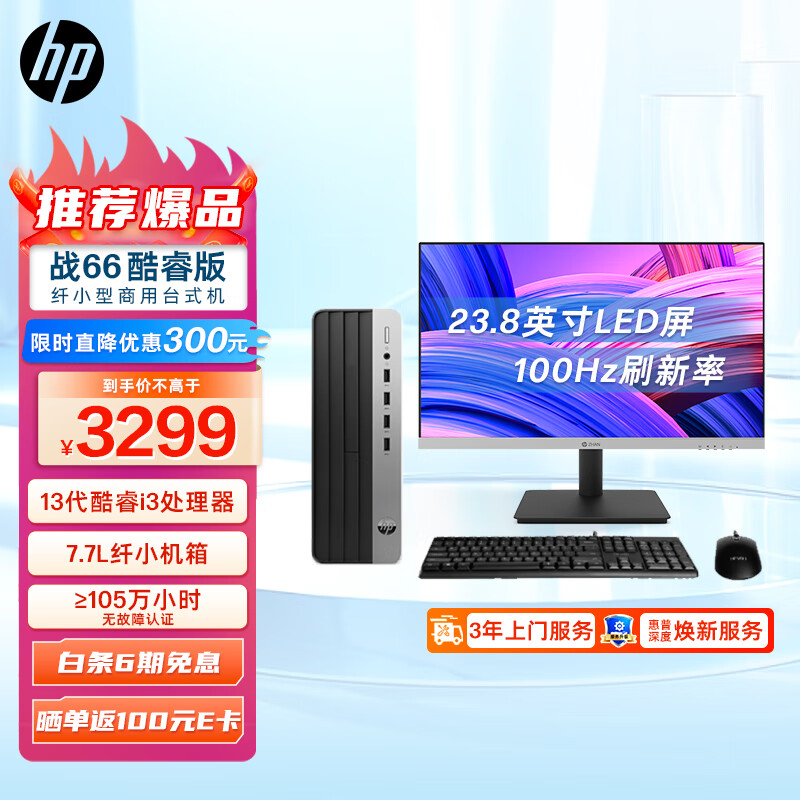 惠普(HP)战66 23款商务办公 教育学习台式电脑主机小机箱(酷睿版13代i3-13100 8G 512G)战系列23.8英寸价格:3299.00元!