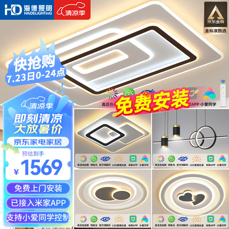 HD 已接入米家app智控吸顶灯 led大客厅卧室餐厅简约全屋灯具套餐A价格:2199.00元!