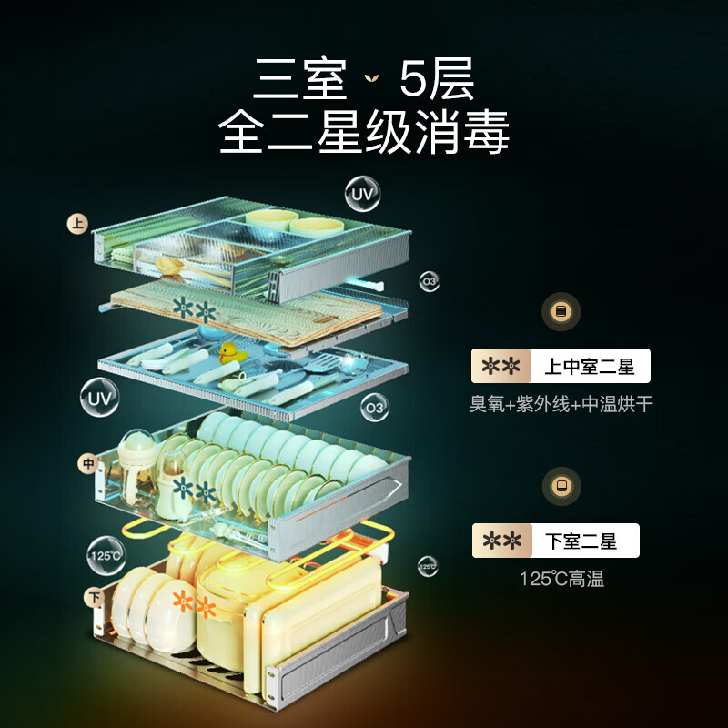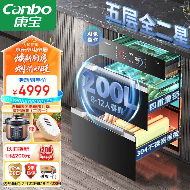 康宝(Canbo)304不锈钢三门五层 消毒柜 嵌入式 家用大升数紫外线厨房餐具碗筷婴儿奶瓶二星消毒碗柜XDZ200-TQ2价格:4999.00元!