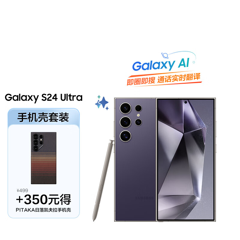 三星(SAMSUNG)Galaxy S24 Ultra AI手机 第三代骁龙8 游戏手机 2亿像素 拍照手机 钛金属边框 12GB+512GB 钛暮紫价格:9849.00元!