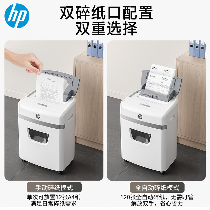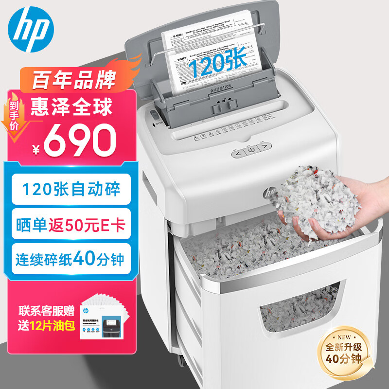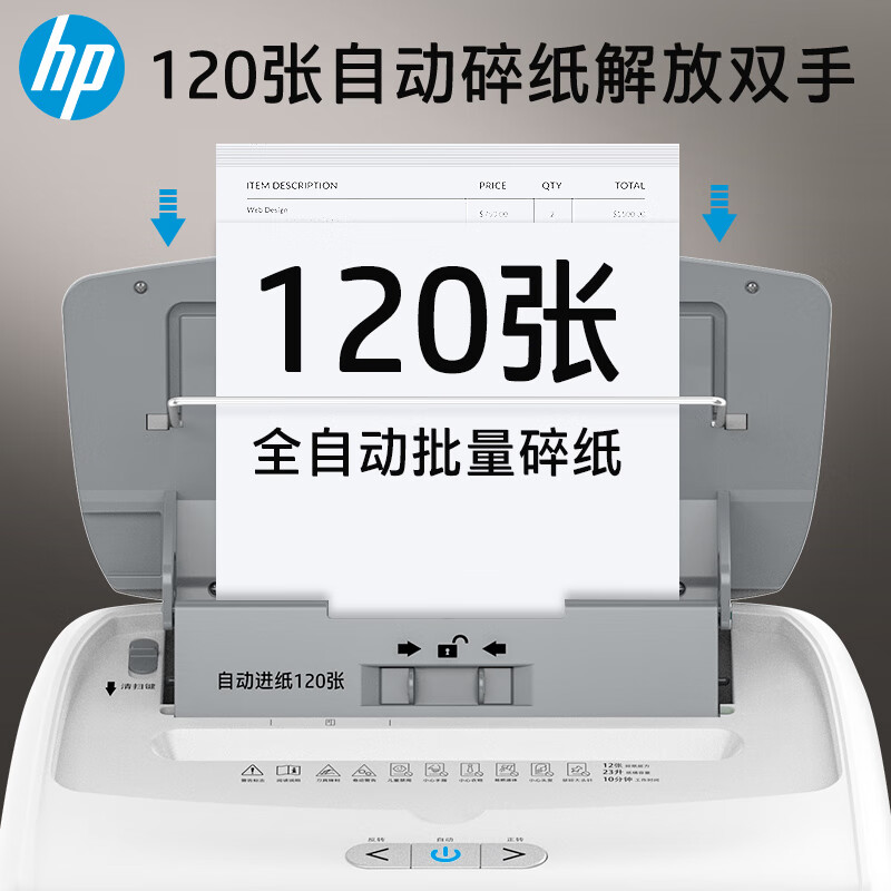 HP惠普 全自动120张碎纸机 高保密办公大型商用粉碎机 (自动碎持续40分钟) 手动单次12张 W23120CC价格:840.00元!