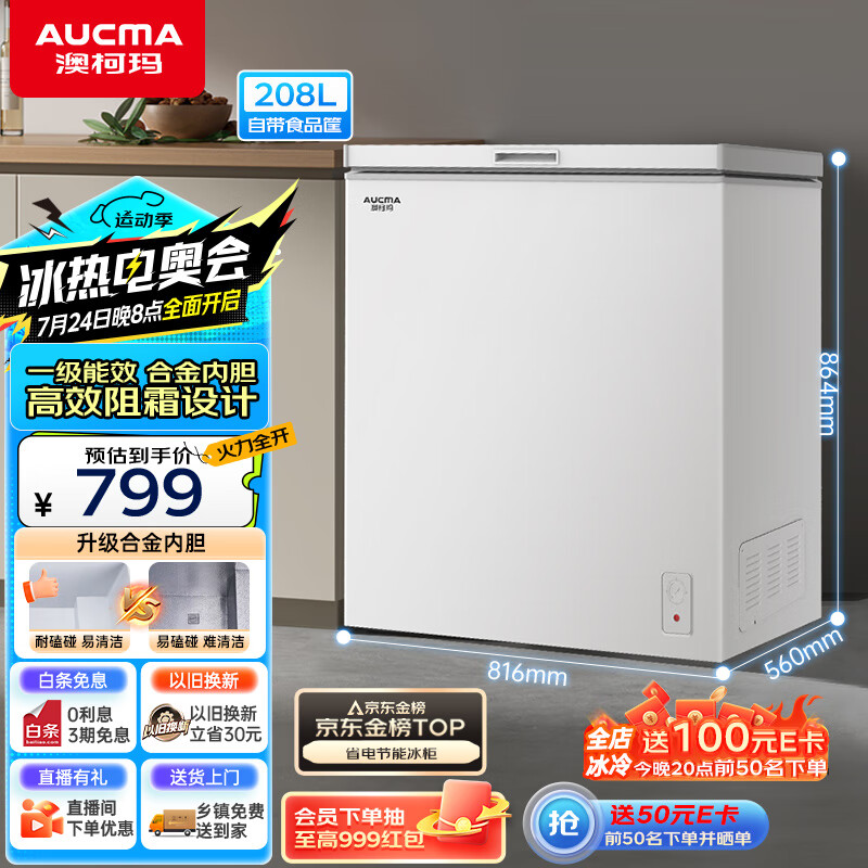 澳柯玛(AUCMA)208升冰柜家用商用冷藏柜冷冻柜转换 母婴母乳卧式低霜小冷柜冰箱一级能效 BC/BD-208HNE 以旧换新价格:799.00元!