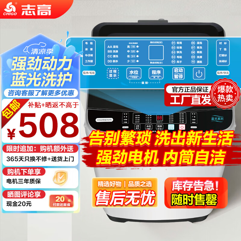 志高(CHIGO)洗衣机15公斤大容量家用商用全自动波轮洗衣机智能洗脱一体机 蓝光洗护强劲电机仿生手洗 灰色价格:528.00元!