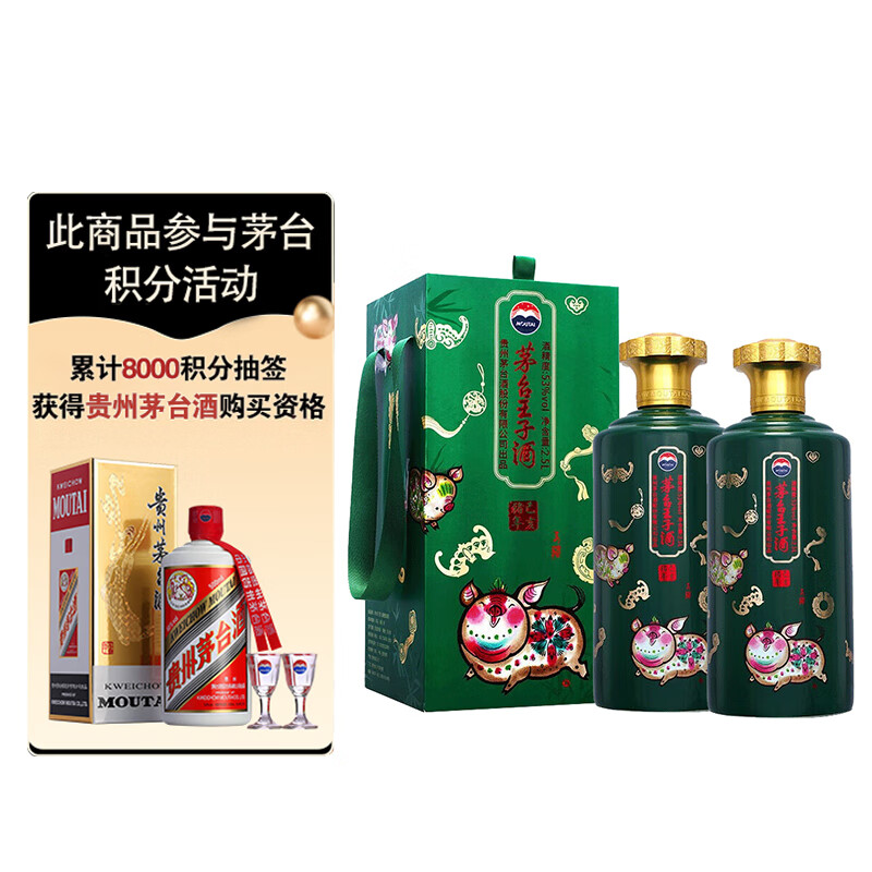 茅台 茅台王子酒 己亥猪年 酱香型白酒 53度 2.5L*2 双坛装价格:4958.00元!