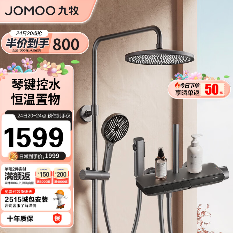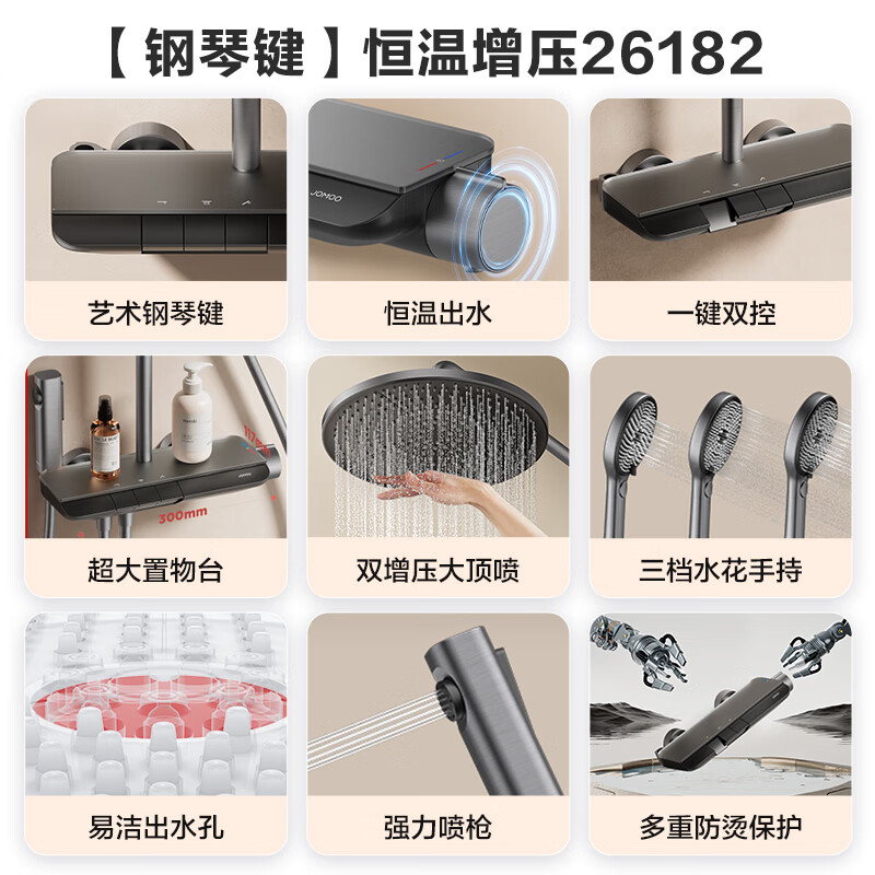 九牧JOMOO枪灰恒温花洒全套琴键置物喷枪双增压顶喷26182-695/HBS-1价格:1899.00元!