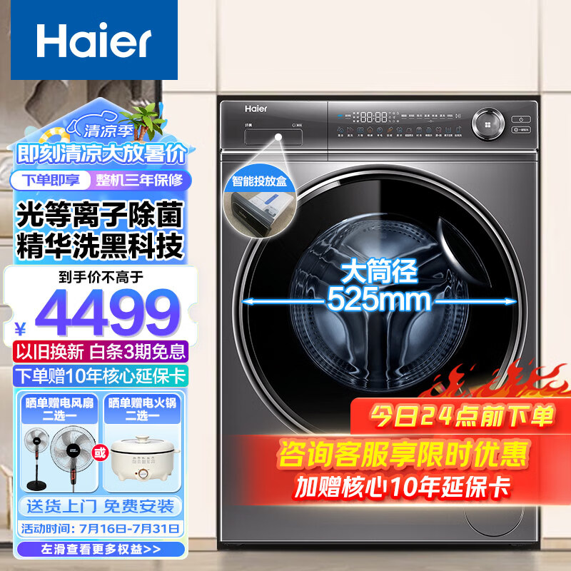 海尔(Haier)【精华洗】10KG滚筒洗衣机全自动家用大容量直驱变频一级能效智能投放+WIFI物联G100388BD14LSU1价格:4499.00元!