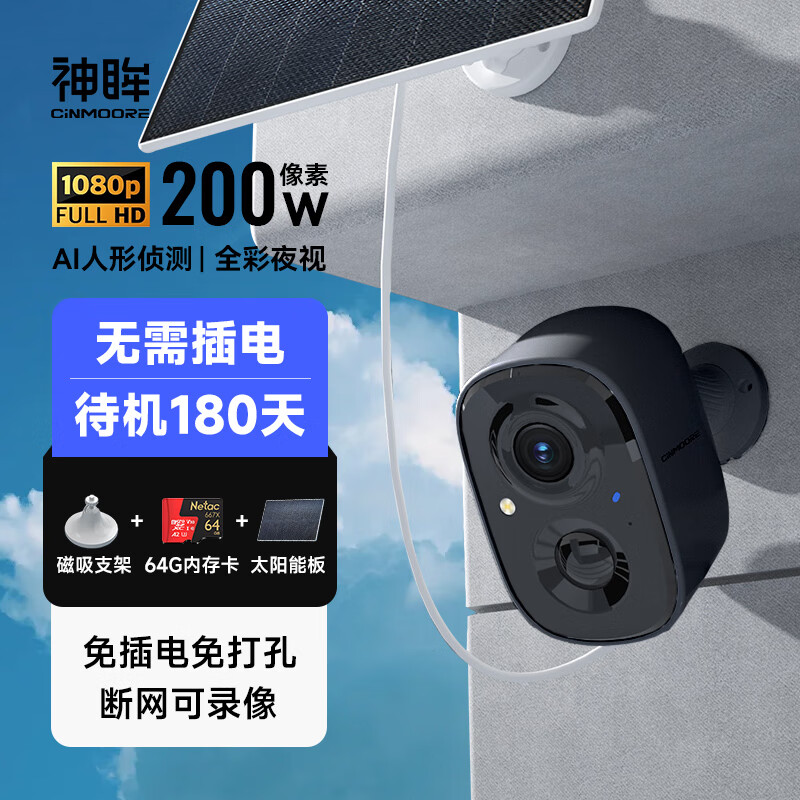 神眸 家门口楼道摄像头 免插电监控器 磁吸免打孔 无线wifi家用室内电池充电 户外太阳能高清手机远程价格:459.00元!