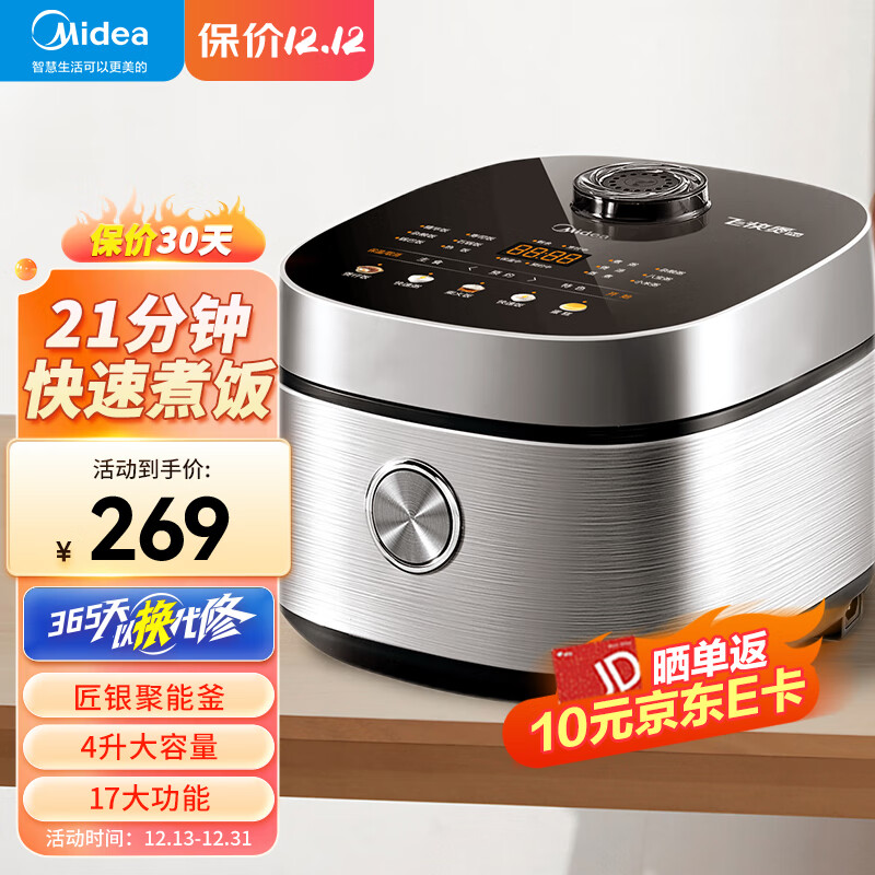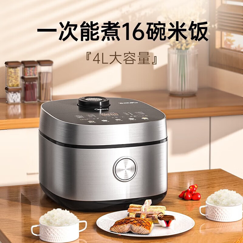 美的(Midea)电饭煲 4L电饭锅 家用柴火饭1-2-3-4-8人 I小型电饭煲银钻除菌内胆21分钟煮饭 24H智能预约 4L容量丨匠银聚能釜FBRC421 21min飞快煮价格:499.00元!