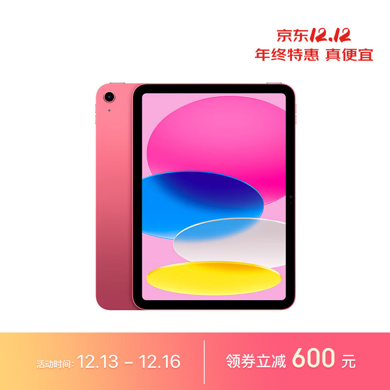 Apple iPad(第 10 代)10.9英寸平板电脑 2022年款(64GB WLAN版/学习办公娱乐游戏/MPQ33CH/A) 粉色价格:3599.00元!