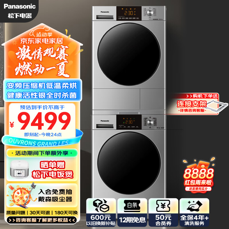 松下(Panasonic)洗烘套装 银色款 10kg滚筒洗衣机+热泵烘干机 活性银除菌 变频压缩机 除毛烘 正反转N183+F1BR2价格:9499.00元!