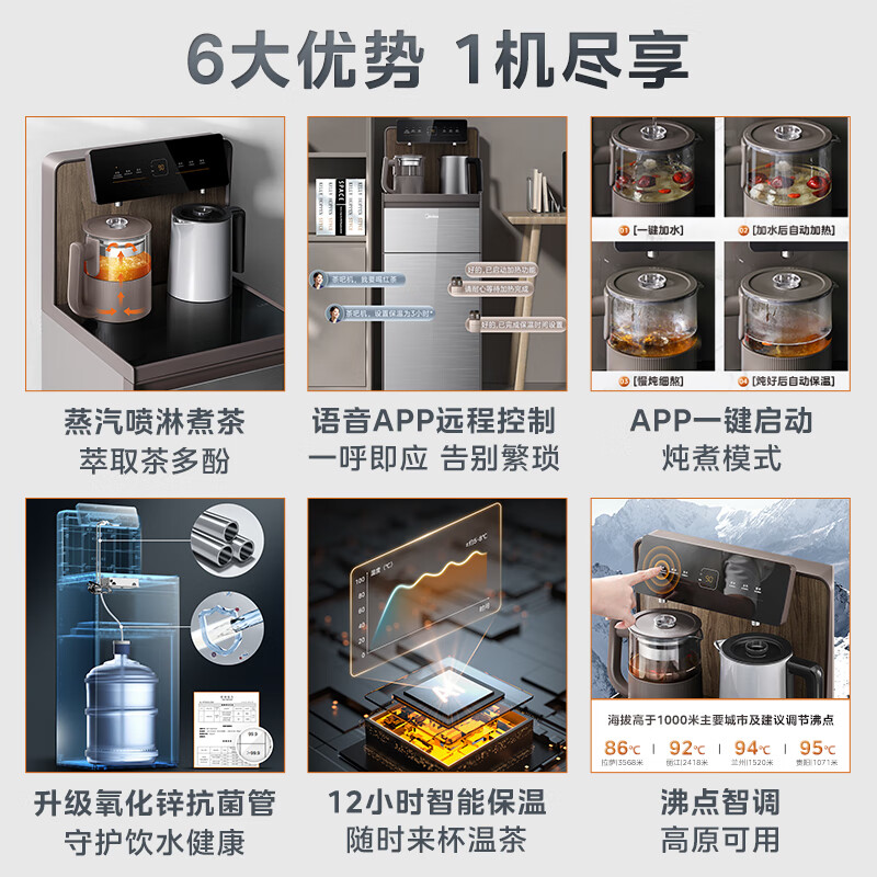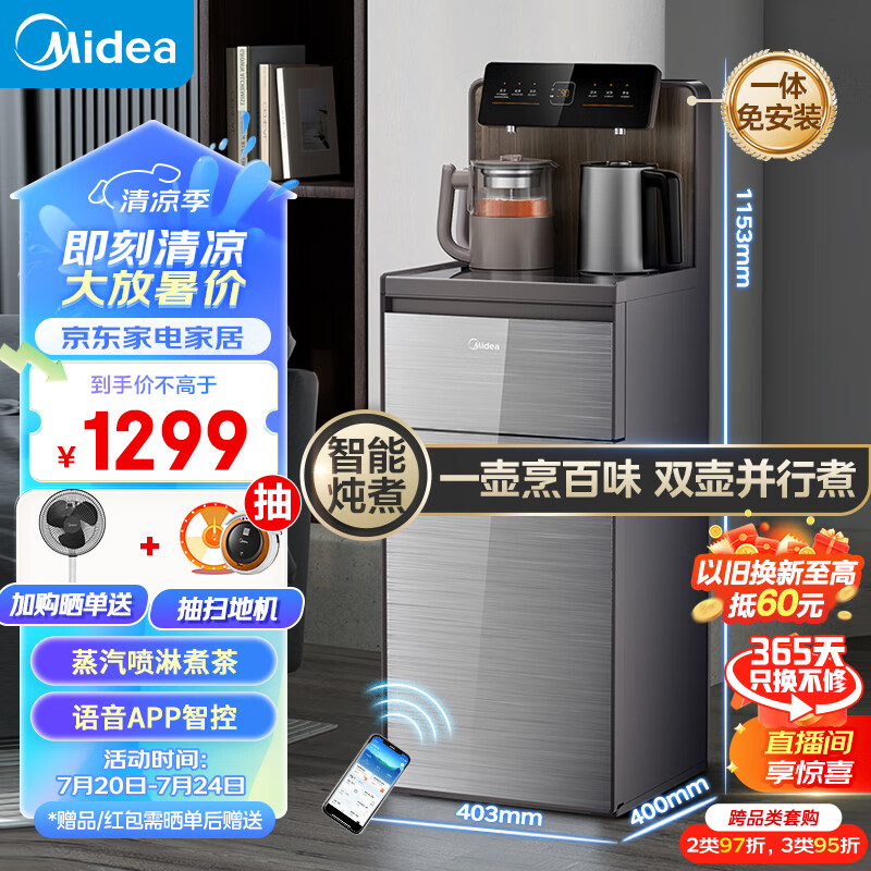 美的(Midea)茶吧机一体柜蒸汽喷淋煮茶APP一键启动智能炖煮家用高端下置式饮水机双壶并行煮泡茶机 YR1629S-X价格:1299.00元!