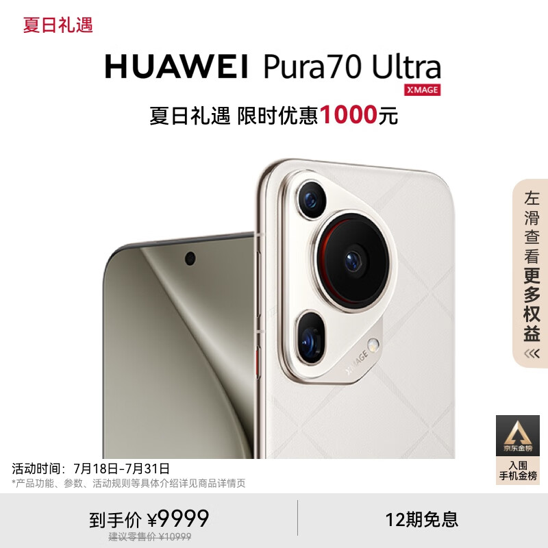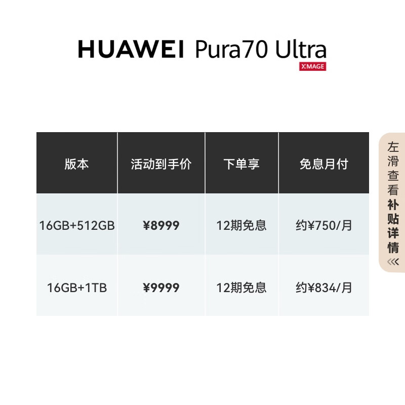 HUAWEI Pura 70 Ultra 星芒白 16GB+1TB 超聚光伸缩摄像头 超高速风驰闪拍 华为P70智能手机价格:9999.00元!