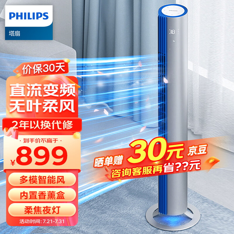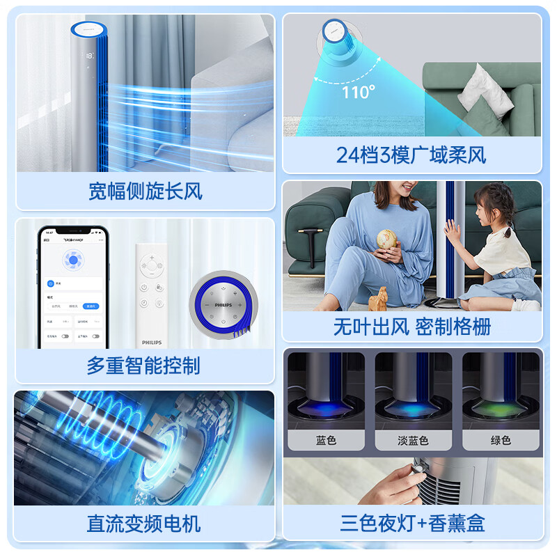 飞利浦(PHILIPS)电风扇落地扇直流变频家用塔扇轻音节能柔风负离子净化无叶风扇香薰夜灯APP遥控电扇 ACR4144TF价格:1149.00元!