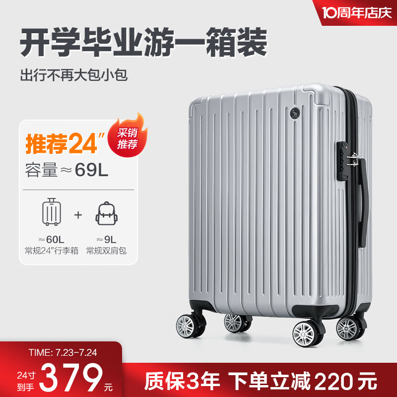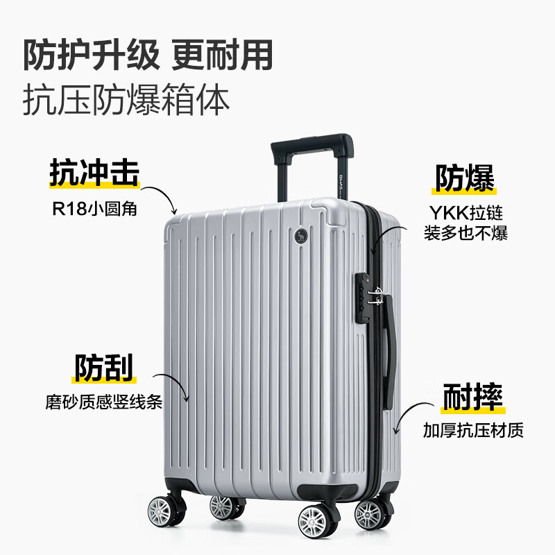 爱华仕行李箱男拉杆箱女大容量旅行箱轻便万向飞机轮24英寸密码箱冰川银价格:599.00元!