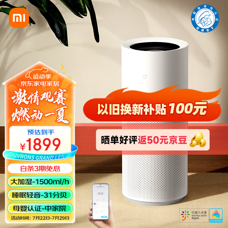 米家小米无雾加湿器3Pro 卧室轻音家用办公室大面积 1500ml/h极速加湿 母婴认证电解水UV杀菌 空调伴侣价格:1899.00元!