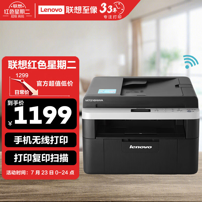 【点击查看联想M7216NWA 黑白激光一体机 (打印 复印 扫描)活动分享】