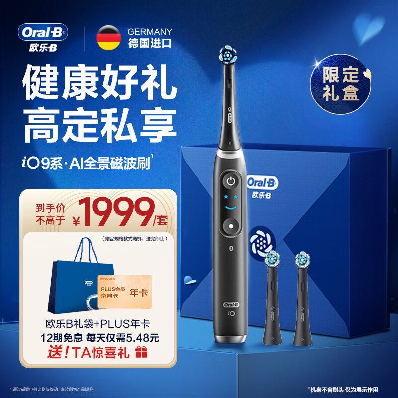 欧乐B成人电动牙刷iO9甄选礼盒AI全景磁波刷圆头iO系列深度清洁智能护龈送男友送女友送礼赠七夕节礼物价格:2279.00元!