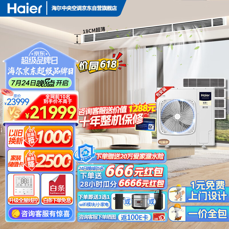 海尔(Haier)中央空调一拖四风管机5匹小多联一级能效全直流变频嵌入式智尊+ RFC125MXSAVB(F)价格:21999.00元!