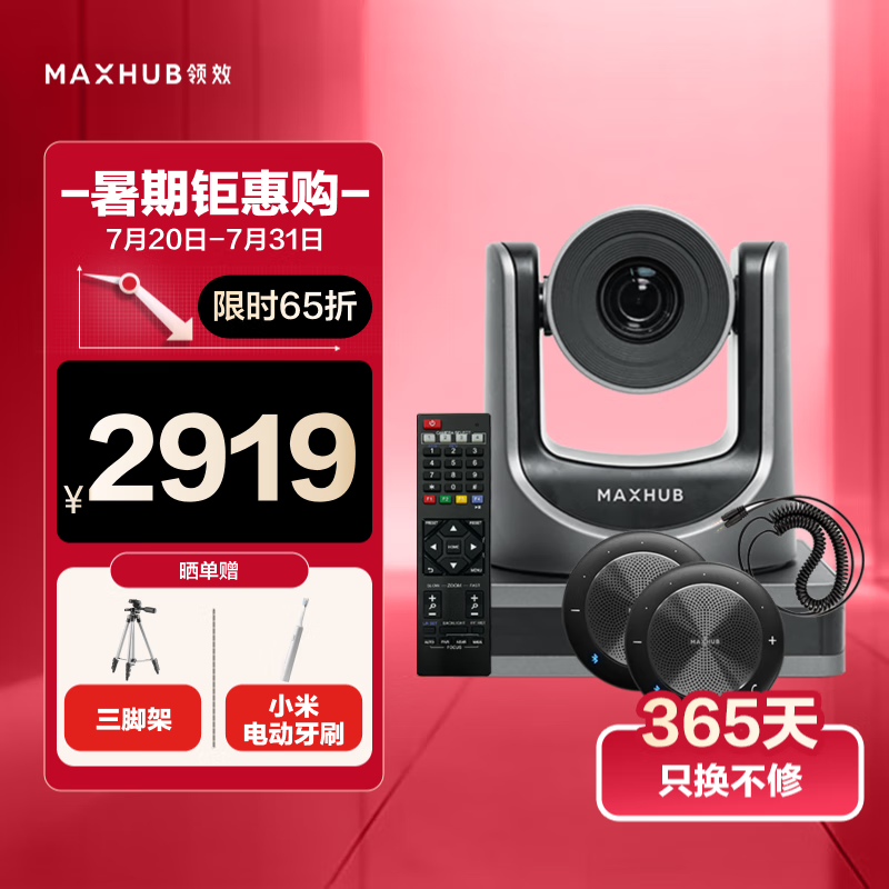 MAXHUB视频会议设备全套装系统10倍光学变焦高清云台摄像头+全向麦克风5米拾音*2会议室解决方案40-60㎡价格:2919.00元!