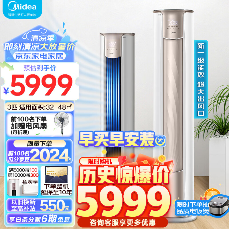 美的(Midea)3匹空调锐静变频空调冷暖柜机新一级能效 APP智控空调 柜式家用大出风口 KFR-72LW/N8VHC1价格:5999.00元!