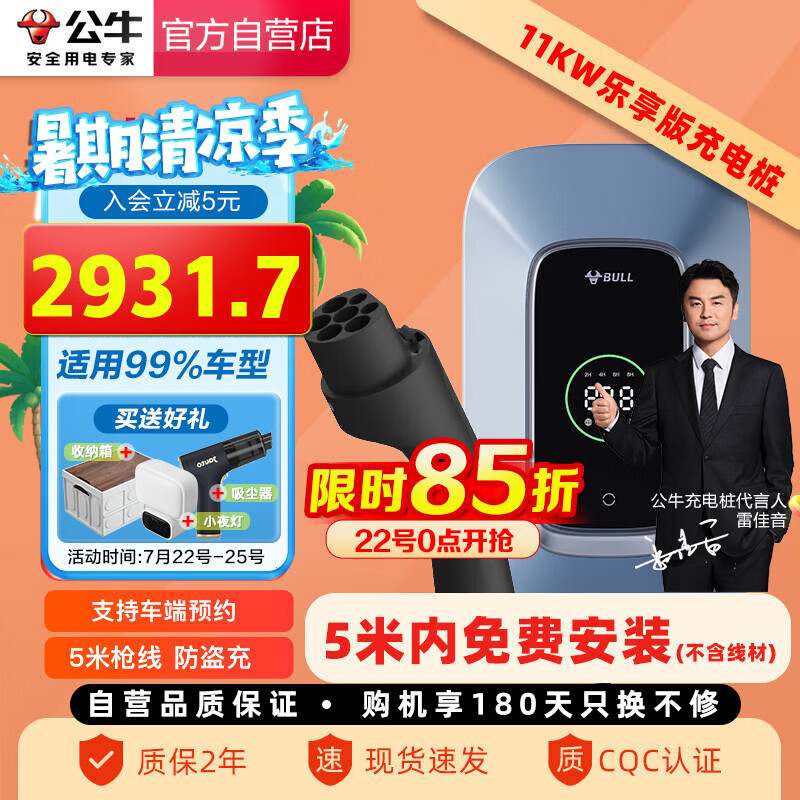 公牛(BULL)新能源汽车交流充电桩动态屏显适配于小米su7汽车特斯拉等 11KW乐享款 送基础安装价格:3449.00元!