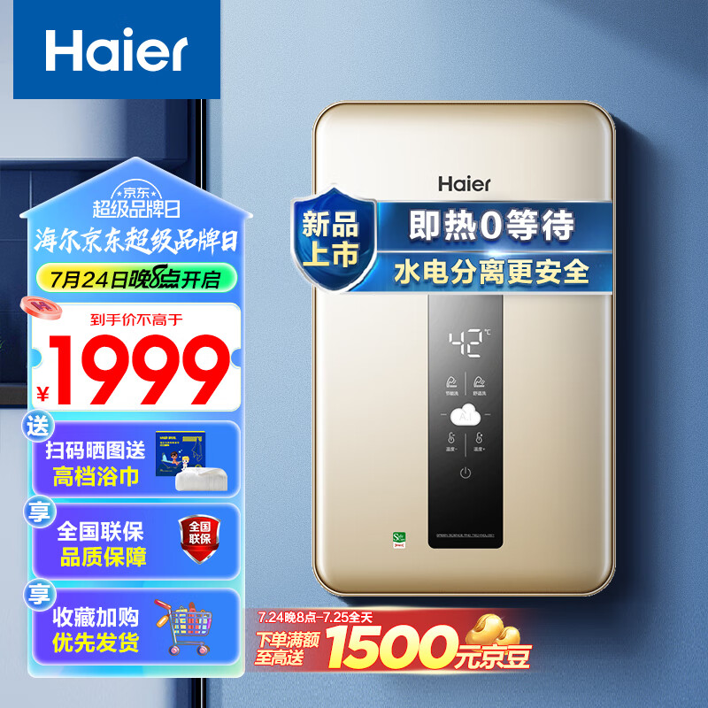 海尔(Haier)电热水器 即热式 高颜值 即开即热一键AI 节能/生活双模式 防电墙 DSH-85AD1以旧换新价格:2199.00元!