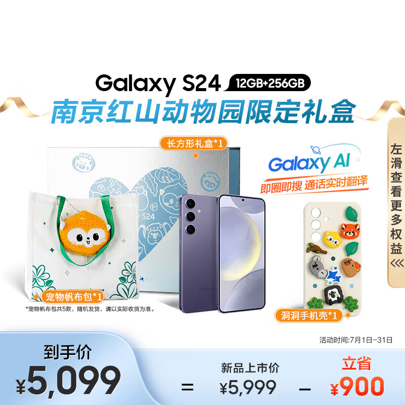 三星(SAMSUNG)Galaxy S24 AI手机 第三代骁龙8 游戏手机 南京红山动物园限定礼盒 12GB+256GB 秘矿紫 5G拍照手机价格:5099.00元!