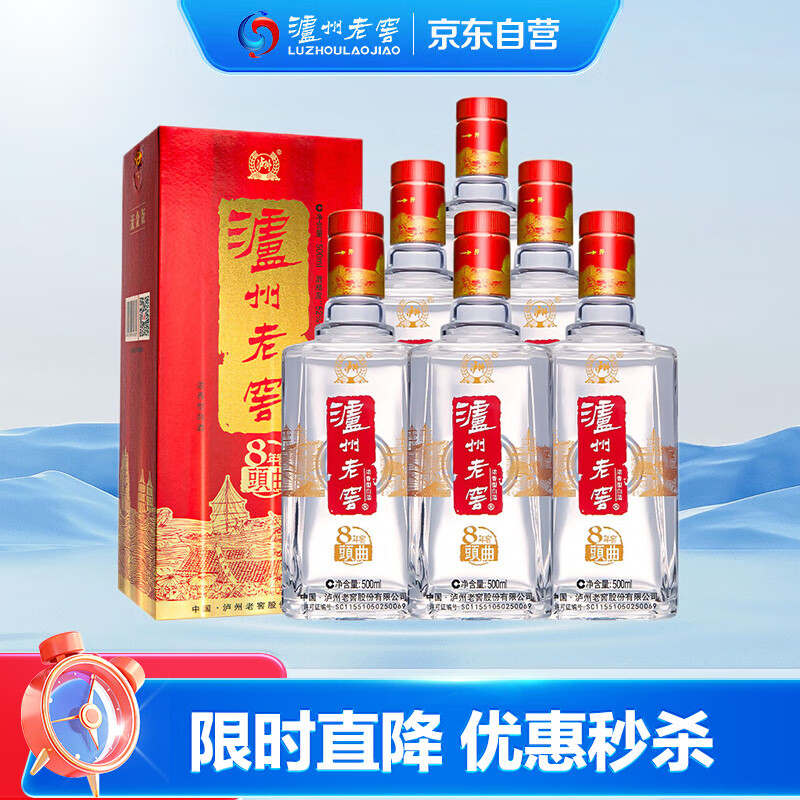 泸州老窖 八年窖头曲 流金版 浓香型白酒 52度500ml*6瓶 送礼整箱装价格:808.00元!