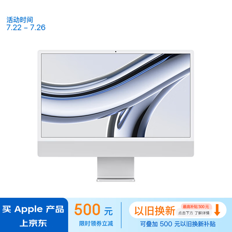 Apple/苹果AI笔记本/2023款 iMac 24英寸银色 4.5K屏 M3(8+10核) 8G 512G 一体式电脑MQRK3CH/A价格:13999.00元!