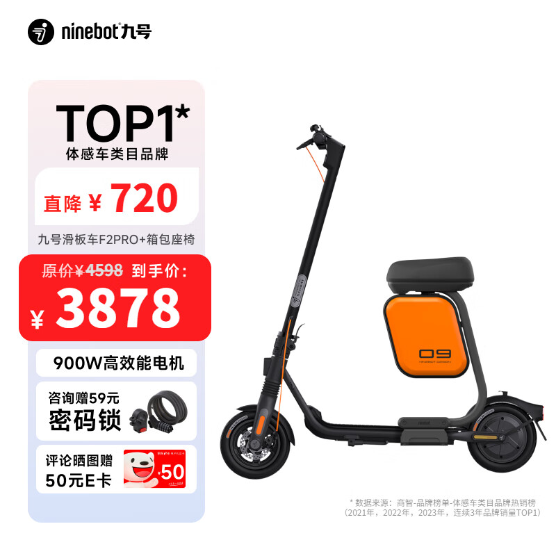 Ninebot九号电动滑板车F2Pro+多功能座椅带箱包 成人学生便携智能可折叠电动车果冻胎前减震防滑价格:3878.00元!