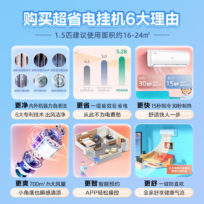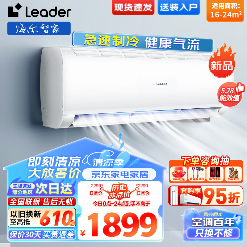 Leader空调海尔智家出品 1.5匹空调挂机新一级能效 变频 自清洁壁挂式空调价格:1899.00元!