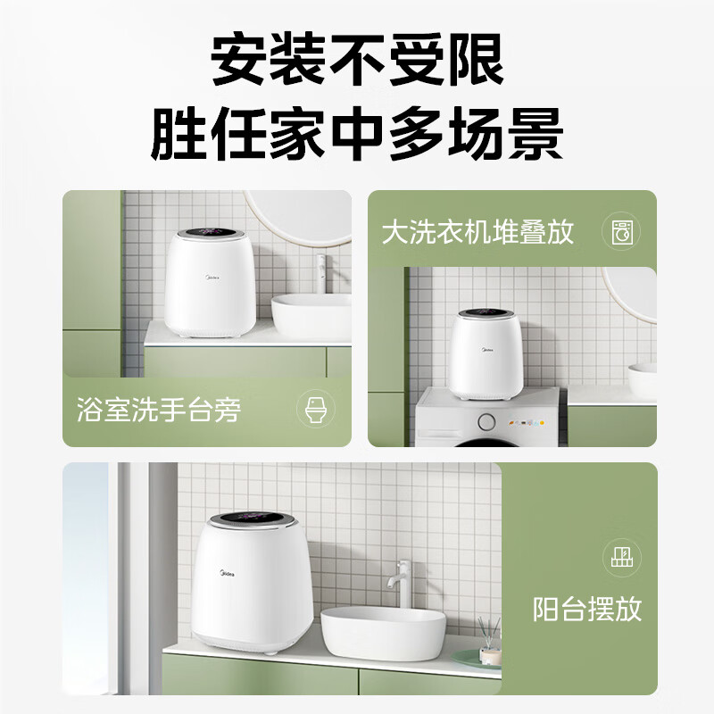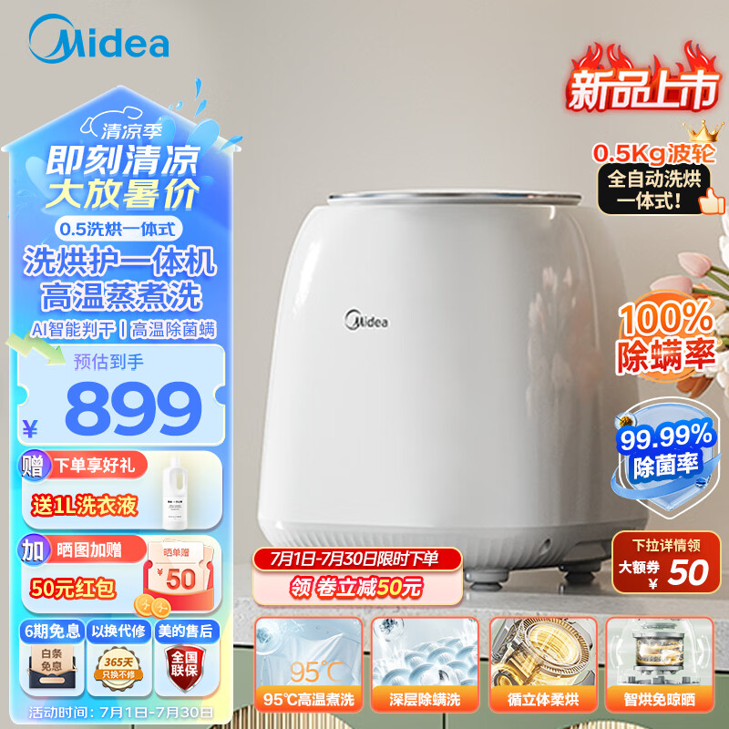 美的(Midea)0.5公斤内衣洗衣机家用全自动带烘干迷你洗衣机95℃高温煮洗除菌除螨免晾晒洗烘一体机MND5VD0WE价格:899.00元!