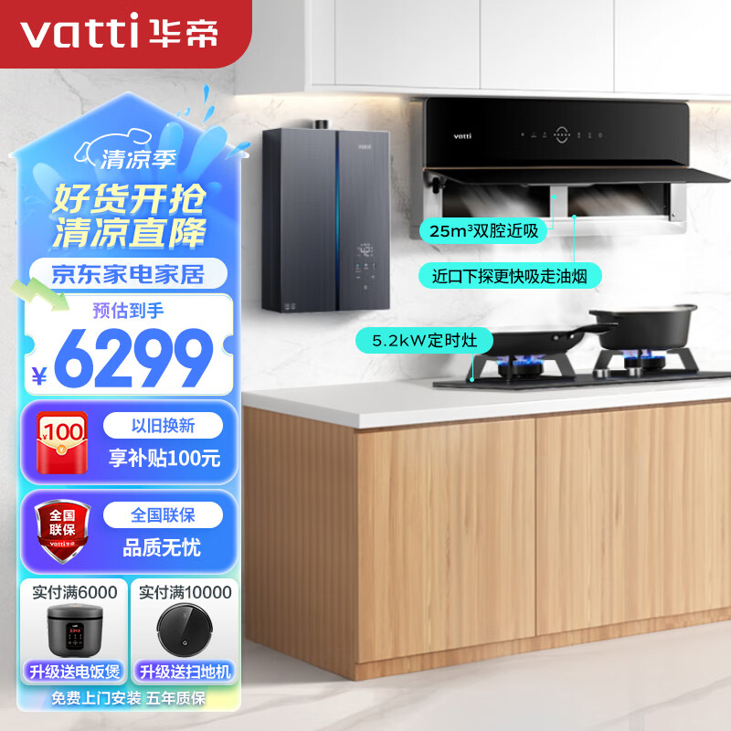 华帝(VATTI)16L水伺服静音下置风机燃热25风量变频大吸力油烟机5.2kW燃气灶多件套装i11210+76B+G5(天然气)价格:6299.00元!