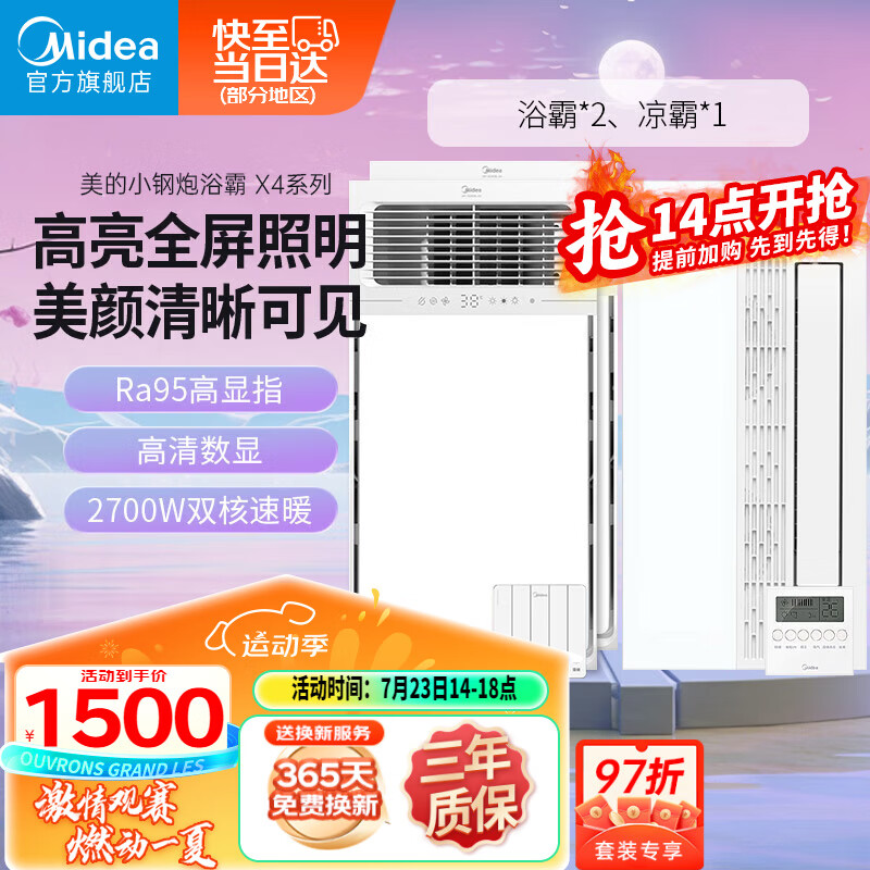 美的(Midea)浴霸双电机数显温控风暖双核卫生间排气扇高显指照明一体机械款价格:1500.00元!