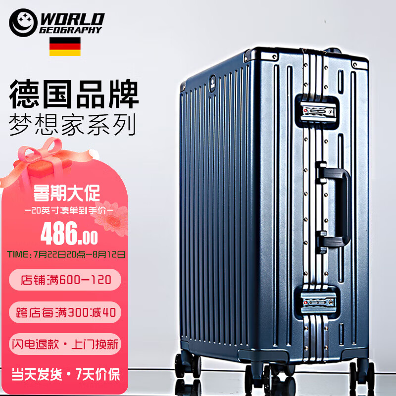 地理德国行李箱男女20英寸登机旅行箱铝框拉杆箱万向轮密码箱 星河蓝价格:699.00元!