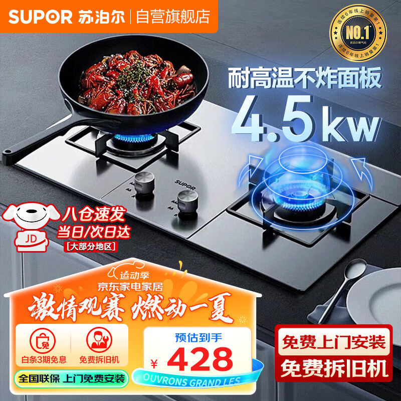 苏泊尔(SUPOR)燃气灶家用天然气灶不锈钢液化气灶双灶台式嵌入式两用灶具NS21 【罐装液化气】4.5KW聚能猛火价格:699.00元!