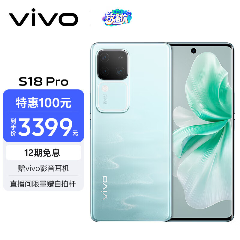 vivo S18 Pro 16GB+256GB 青澈 天玑9200+旗舰芯片 后置影棚级柔光环 5000mAh超薄蓝海电池 拍照 手机价格:3499.00元!