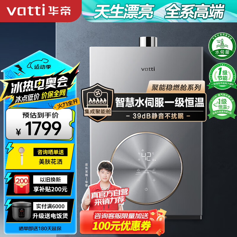 华帝(VATTI)16升燃气热水器天然气新升级水伺服一级恒温密闭稳燃舱i12164-16 以旧换新价格:1999.00元!