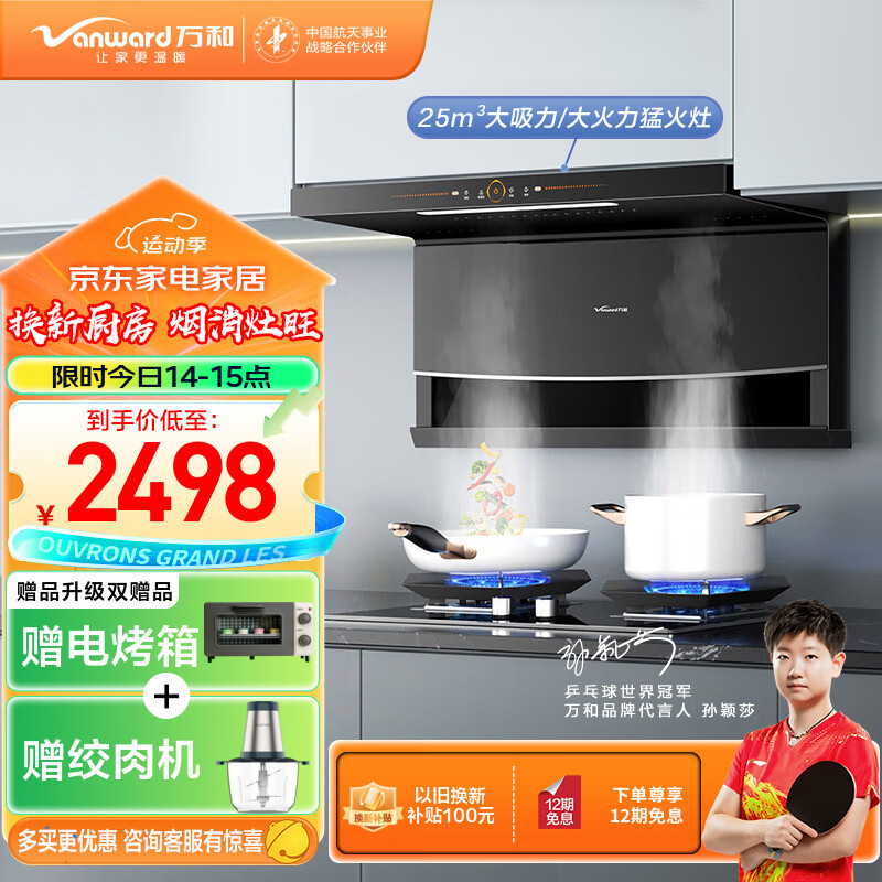 万和(Vanward)顶侧双吸7字型烟灶套装家用 25m3/min大吸力 智感热清洗 挥手控制 WL856+G8L90(天然气)价格:2498.00元!