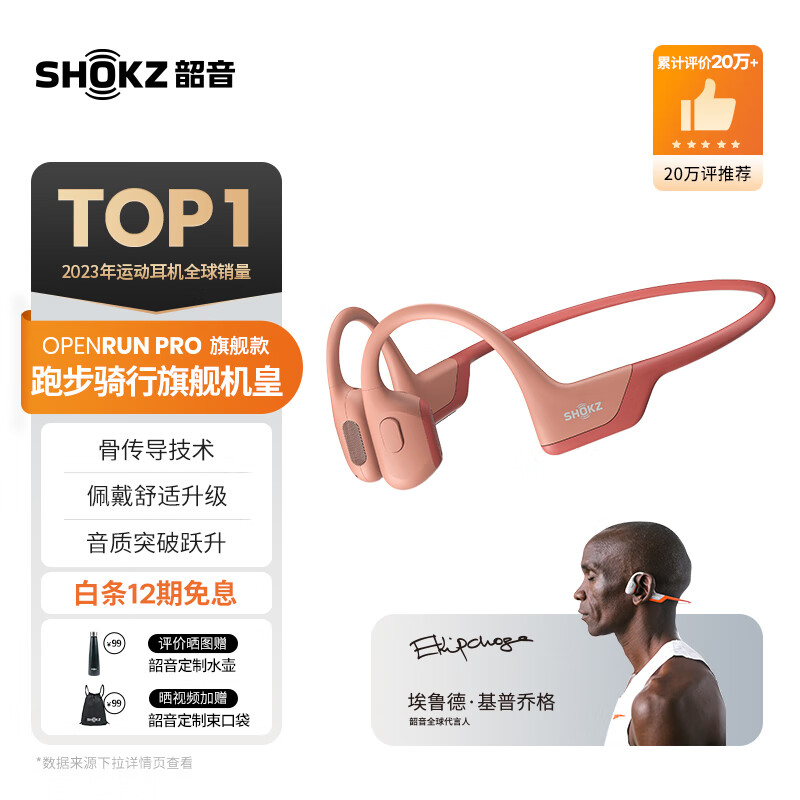 韶音(SHOKZ)OpenRun Pro骨传导蓝牙耳机开放式耳机运动无线骨传导耳机跑步不入耳挂耳式蓝牙耳机S810/S811 西柚粉价格:1098.00元!