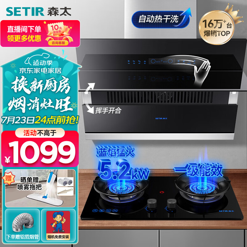 森太(SETIR)B560QC抽油烟机侧吸式脱排自动清洗吸油烟机大吸力家用抽烟机 【烟灶套装】搭配5.2kW聚能灶-天然气 25立方爆吸风量价格:1799.00元!